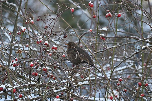 Heckenrosen, deren Früchte nicht geerntet werden, sind eine wichtige Nahrungsquelle im Winter für unsere Singvögel und außerdem mit den roten Früchten sehr dekorativ. Im Sommer bieten sie Ihnen zur Zeit der Jungvogelaufzucht zusätzlich einen ausgezeichneten Schutz vor Feinden.