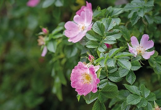 Die Gebirgs- oder Bergrose, ist fast ohne Dornen. Sie ist winterhart und auf bis zu 2.000m Seehöhe zu finden. Sie ist aber nicht verwandt mit der Alpenrose, die zu den Erikagewächsen gehört.